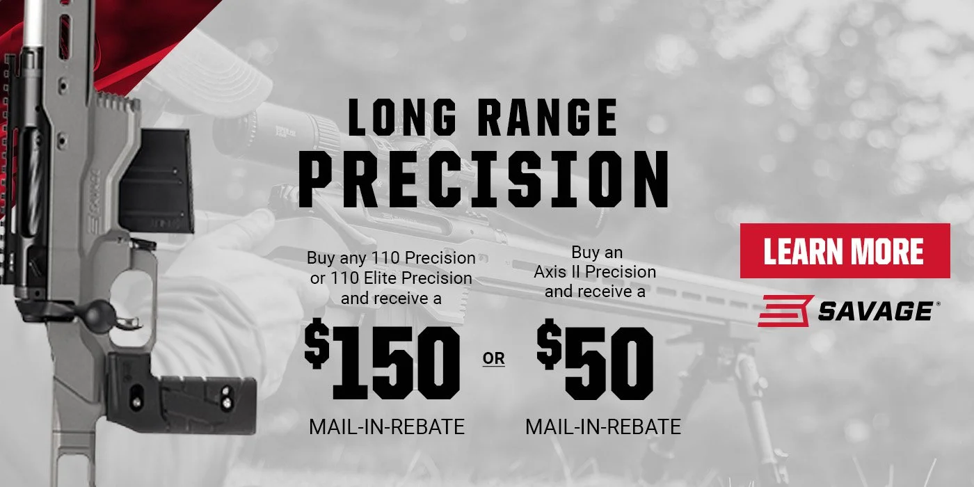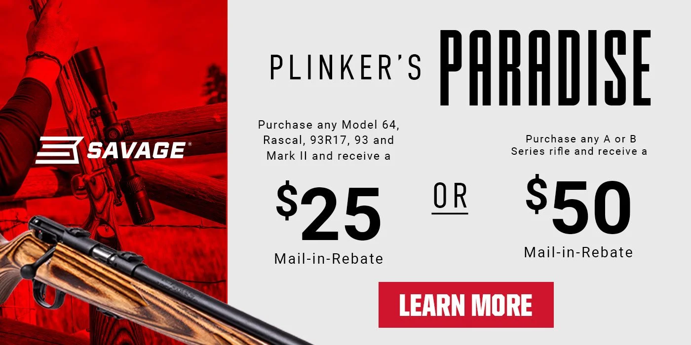 Strut Your Stuff - Mail-In-RebateValid for purchases made February 1, 2026 through March 30th, 2026. Rebate materials must be uploaded by April 30th, 2026. Limit 5 per household.Plinker's Paradise - Mail-In-RebateValid for purchases made March 1, 2026 through April 30th, 2026. Rebate materials must be uploaded by May 30th, 2026. Limit 5 per household.Double Barrel Dreams - Mail-In-RebateValid for purchases made March 1, 2026 through April 30th, 2026. Rebate materials must be uploaded by May 30th, 2026. Limit 5 per household.Long Range Precision - Mail-In-RebateValid for purchases made March 1, 2026 through April 30th, 2026. Rebate materials must be uploaded by May 30th, 2026. Limit 5 per household.